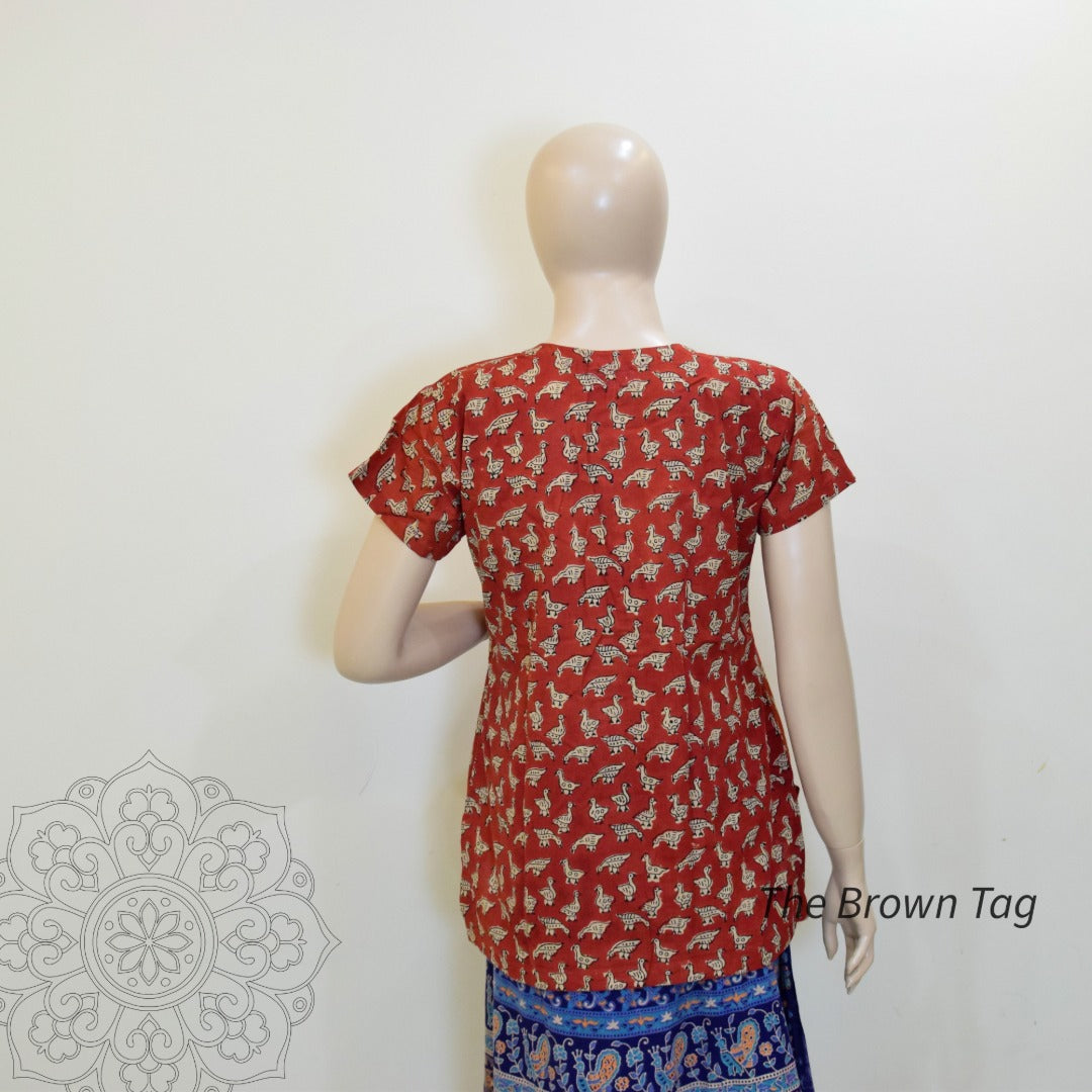 Maroon bird print short kurthi